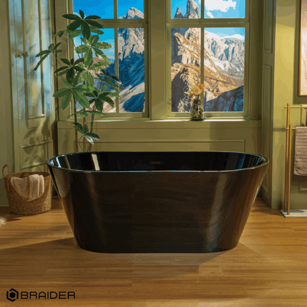 BRAIDER wanna wolnostojąca ALTARIA 170 cm, czarna to elegancka wanna wolnostojąca, która przede wszystkim stworzona jest z wysokiej jakości akrylu sanitarnego, odpornego na matowienie i promieniowanie UV. Po pierwsze, jej nowoczesna forma doskonale komponuje się z wystrojem współczesnych łazienek, a po drugie połysk i staranne wykończenie dodają wannie lekkości i klasy. Dodatkowo, wanna wyposażona jest w otwór przelewowy oraz praktyczny zestaw: syfon i korek klik-klak. Dno antypoślizgowe.